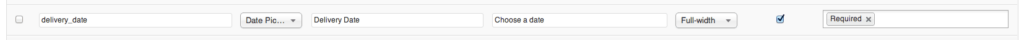 On the front end, customers can see and enter info in a custom field displayed during checkout. For example, Delivery Date and then use the datepicker to select one: