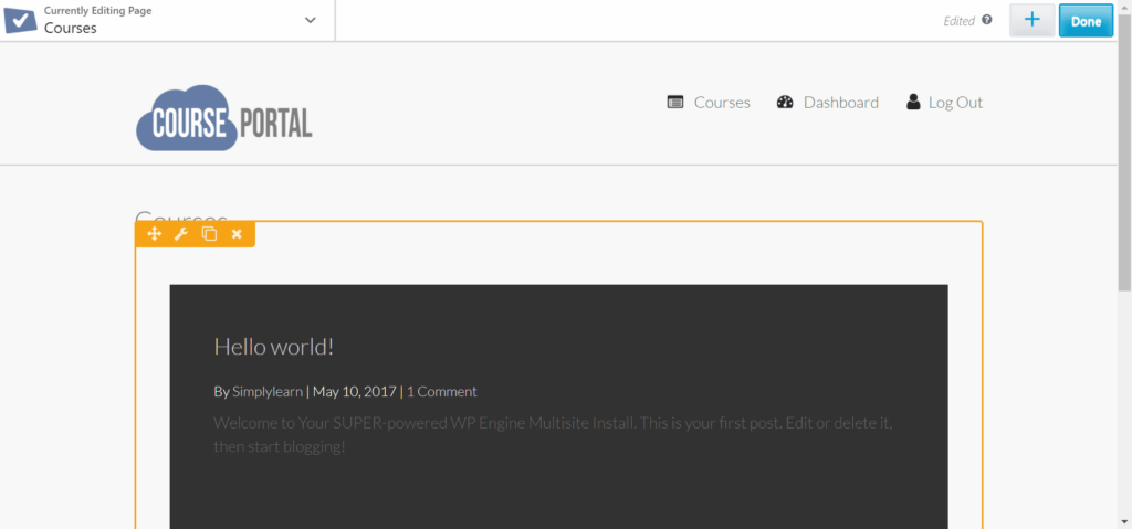 - Make your edits, click Done > Publish, then the main editing screen opens again. You can continue working on your layout for that page, or exit Page Builder.