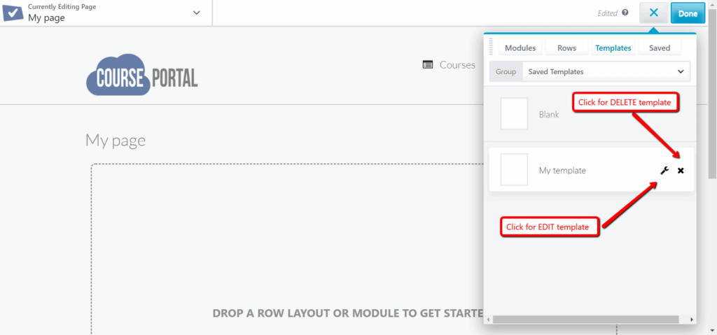 You can edit or delete layout templates within Page Builder while you have any page open for editing. Tip: The page itself does not have to be using the template to edit or delete the template. To edit or delete a custom layout from within a Page Builder editing page: 1. Click the Templates button in the upper right corner. 2. You’ll see the list of saved layout templates. 3. To delete the…