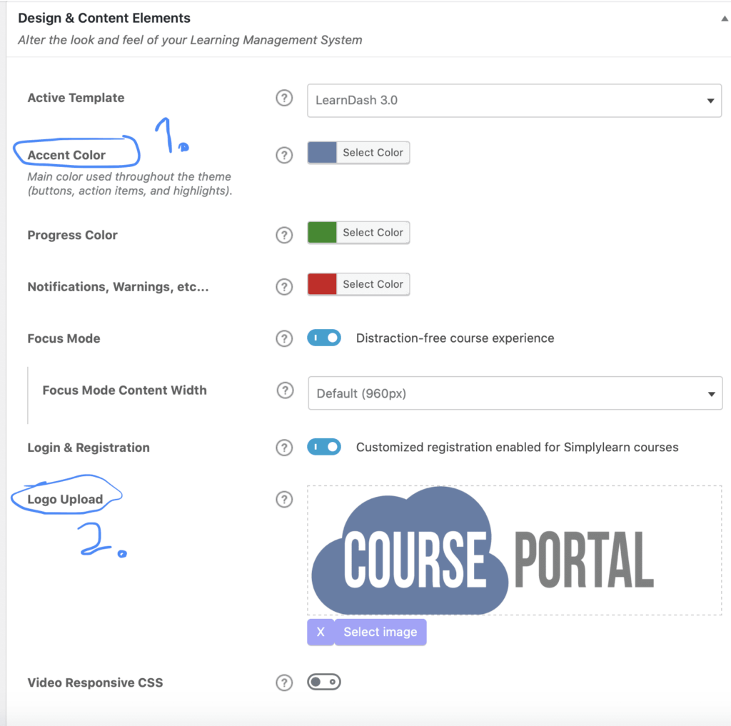 SIMPLYLEARN RECOMMENDS: We recommend keeping the progress and notification colors that are already installed in the settings but adjust the accent color to what is the main color for your website.