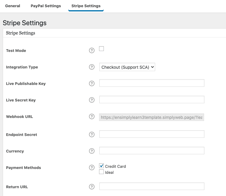 3. Copy the auto-generated Webhook URL from your Stripe settings inside Simplylearn.