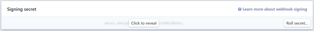 1. Locate the Signing secret section in the webhook you just created and select Click to reveal