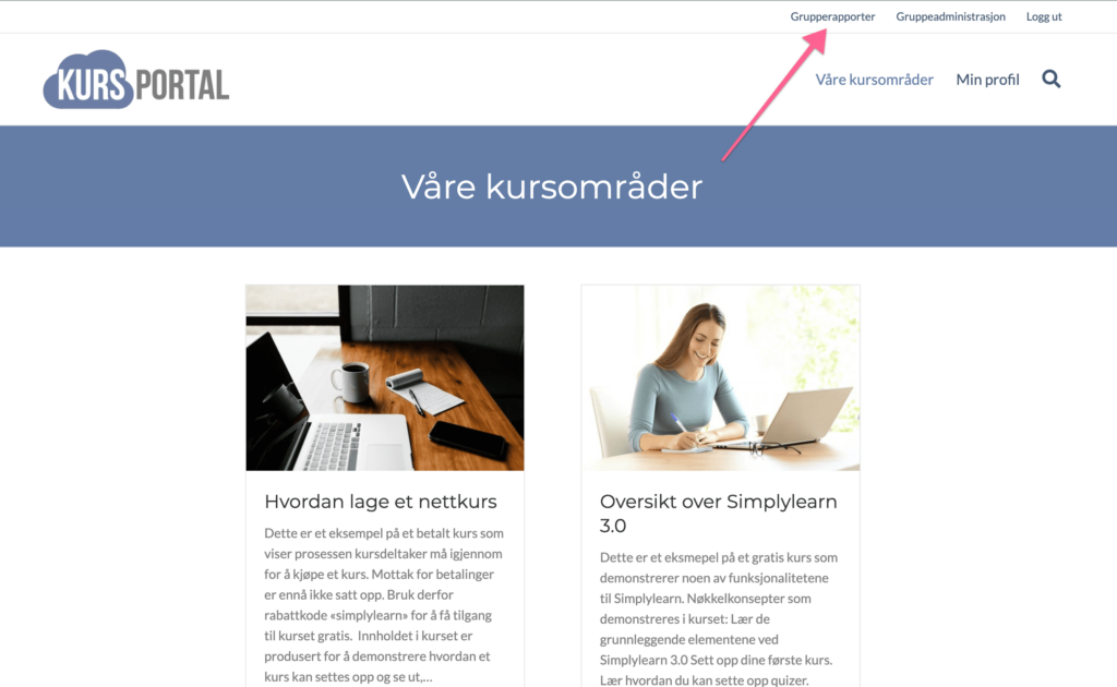 Ved å bruke «grupperapportene» kan du følge med på progresjonen til dine kursdeltakere. Du kan se hvor langt i kurset gruppen din har kommet samlet sett, eller se hvor langt hvert individ i gruppen har kommet.