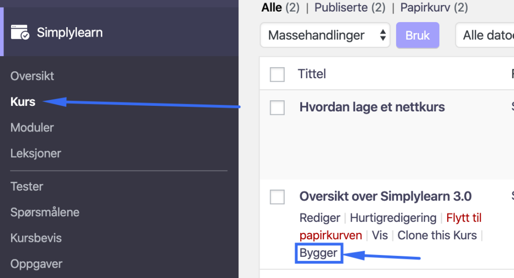 1. Naviger til SimplyLearn> Oppgaver.