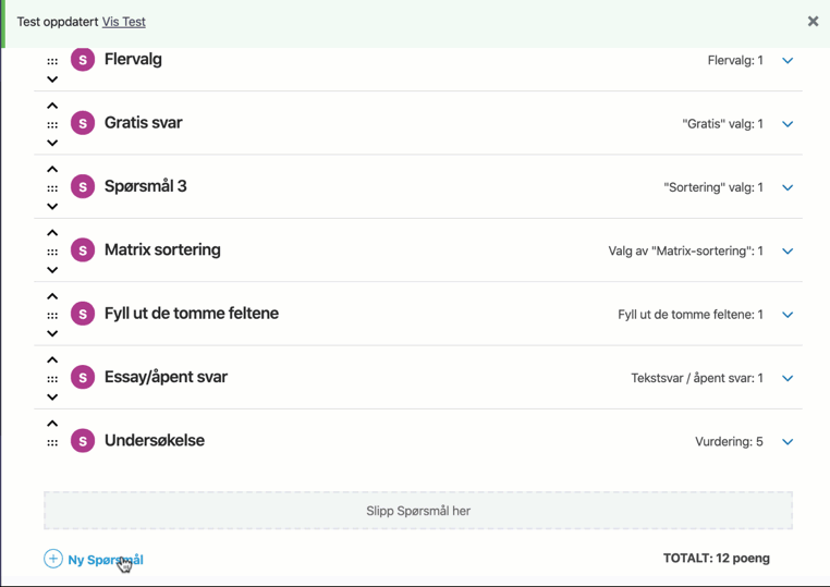 Slik legger du til et helt nytt spørsmål i en oppgave: