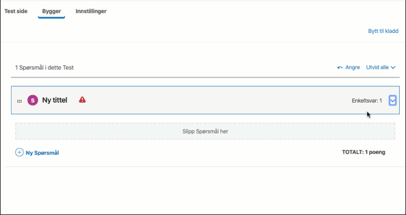 For alle andre redigeringer av spørsmålet, må du utvide spørsmålet ved å klikke på den blå pilen til høyre. Alternativt kan du utvide alle spørsmål på en gang ved å bruke lenken «Utvid alle» øverst i quizbyggeren.