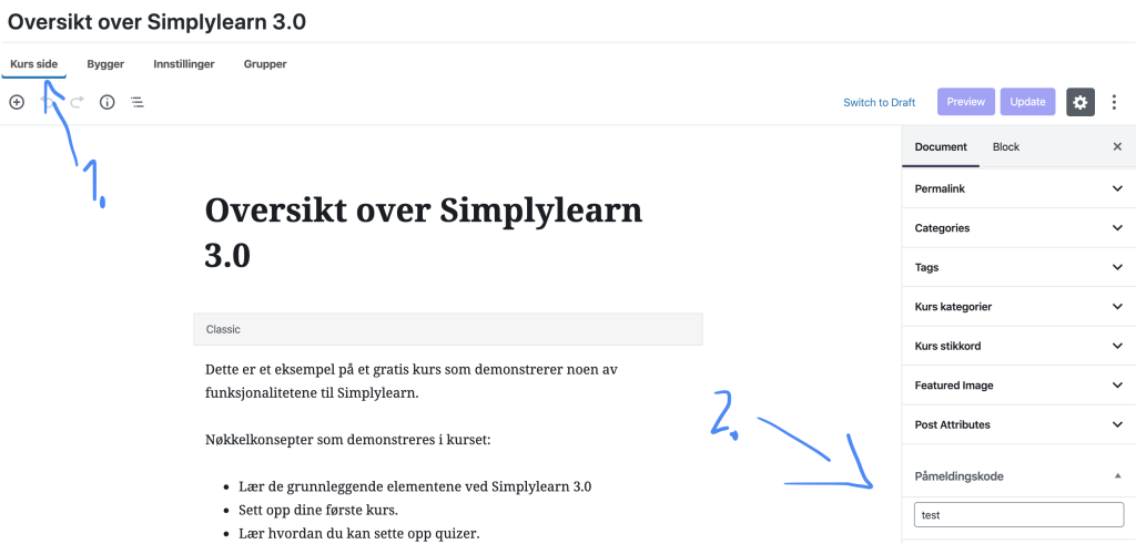 - Naviger SimplyLearn > Kurs > Trykk deretter på det kurset du ønsker å redigere.