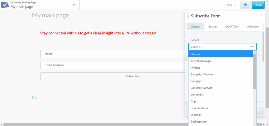 The Subscribe Form module supports a connection to the following services: