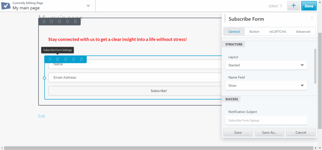 Using Subscribe Form Settings, you can choose different layout styles, colors and texts.