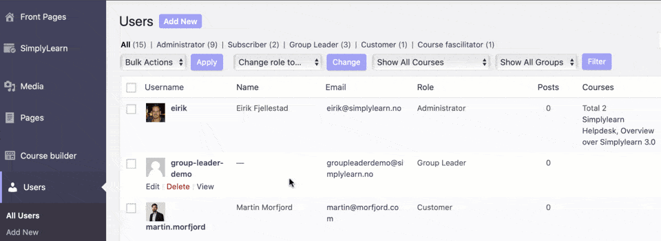 You can also change the role of existing users by following the process below.