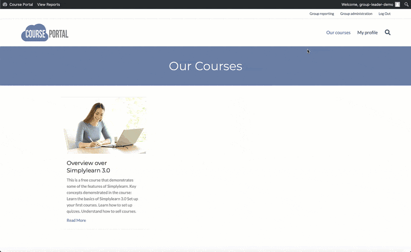 • view reports on course progress for any user in the group